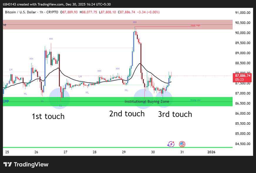 Each time price revisits a zone, institutional orders get consumed.