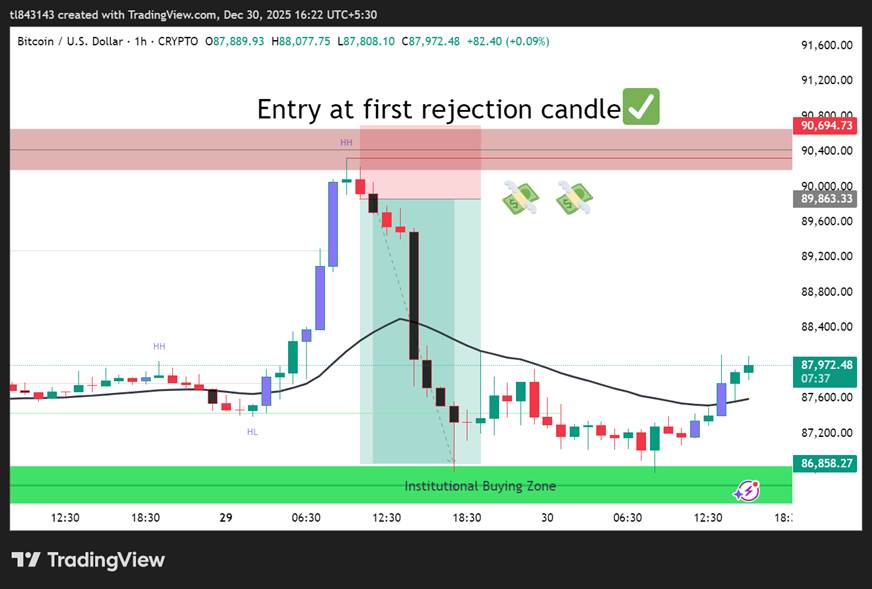 - Target: Based on structure, liquidity, or resistance zones