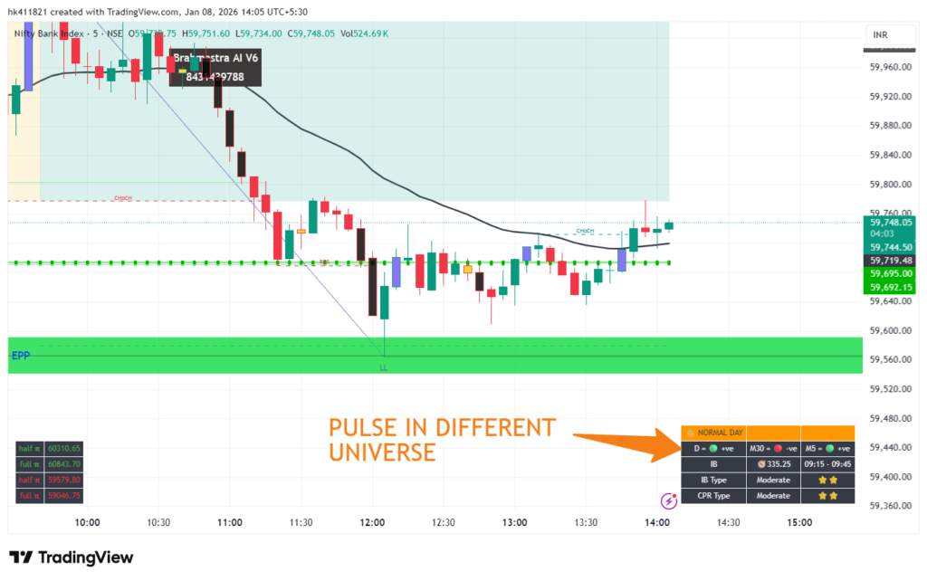 The Pulse Dashboard in Brahmastra AI Indicator V6.1 is built with this exact philosophy. It helps traders understand whether the market is slow, aggressive, directional, or deceptive. This feature is designed to guide traders on position sizing, trade selection, and expectations for the day, which most indicators completely ignore.